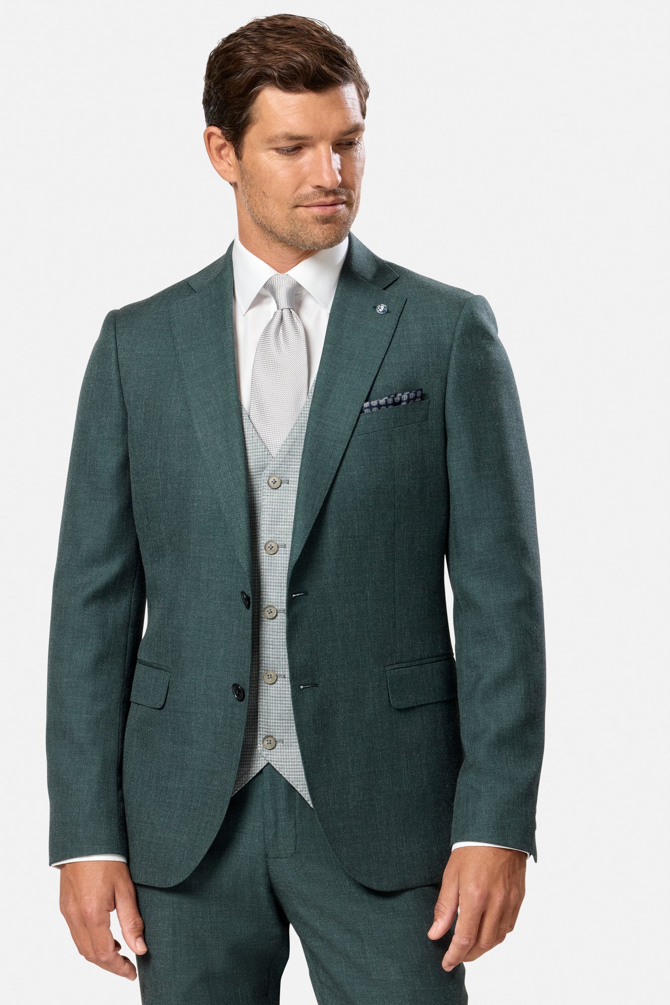 Sophisticated, versatile, and modern, the Marco Forest Suit is part of Benetti’s latest mix-and-match collection. Styled here with the Lucas Sage Waistcoat, this refined combination introduces a fresh tonal balance — a perfect harmony of depth and contrast for the modern groom.