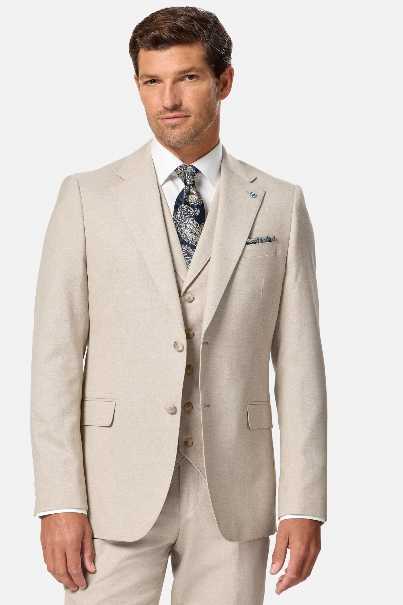 Whether styled as a refined two-piece or elevated with the matching waistcoat, the Albert Stone embodies the perfect balance of classic tailoring and contemporary design — a modern statement in natural sophistication.